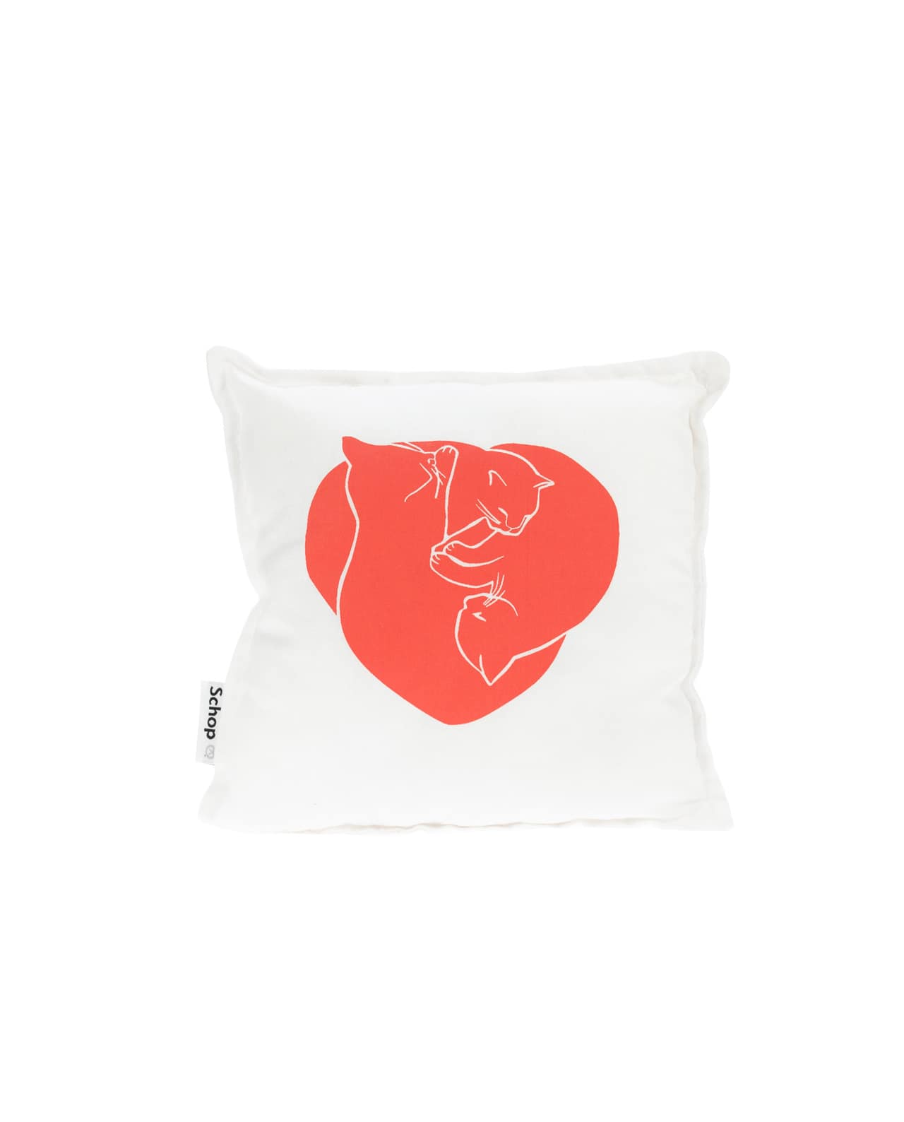 Mini coussin 25×25 impression sérigraphie made in France, motif graphique cœur et chat